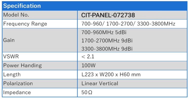 Antena PANEL 2/3/4/5G de 5/9 DBI en 700-2700-3800 MHz